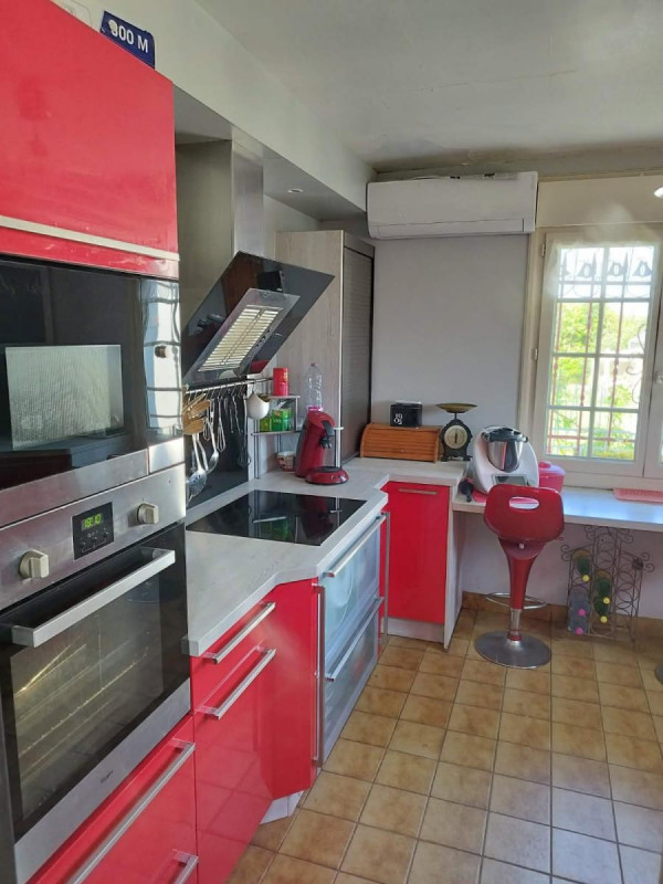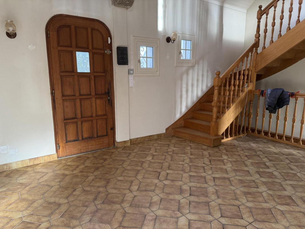Vaste entrée cathédrale, cuisine équipée et aménagée, séjour cheminée, véranda, chambre, salle de bains et wc.