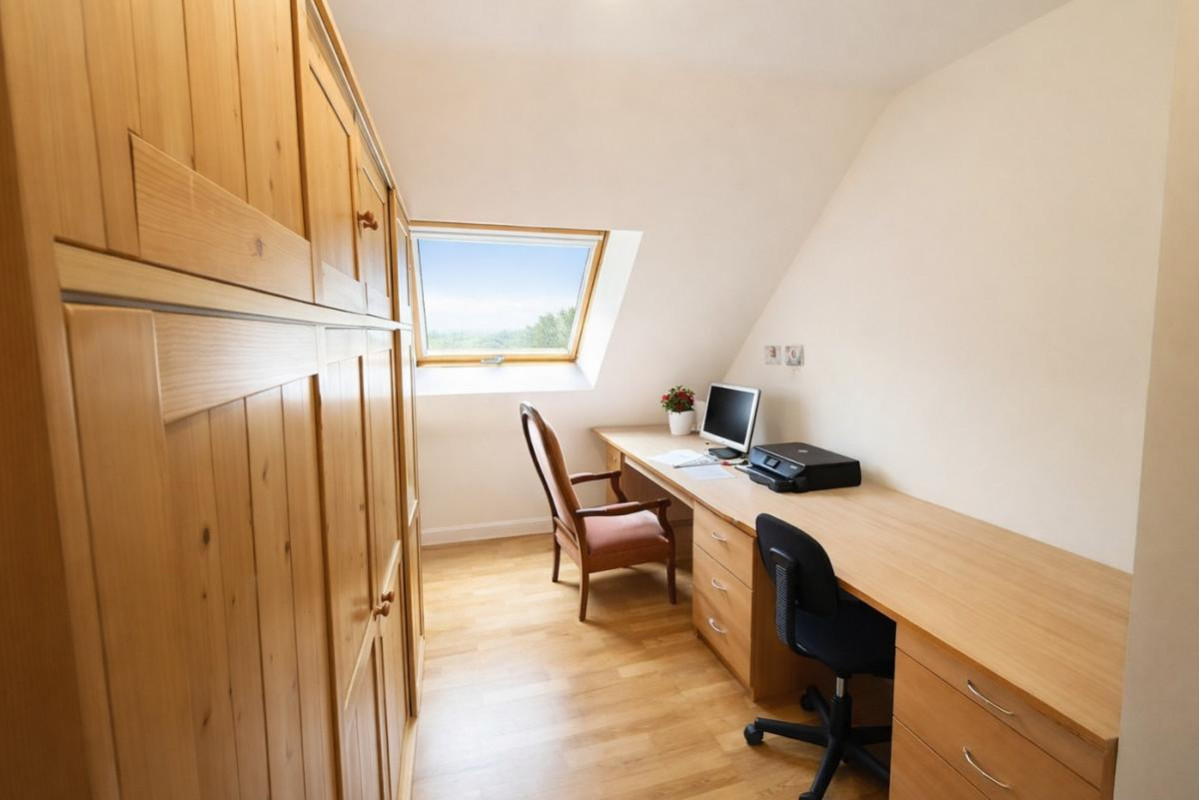 Maison familiale au calme, sans vis-à-vis, esprit hameau proche centre-bourg et commerces. RDC : séjour, cuisine, chambre, salle d’eau. Étage : 3 chambres, bureau, salle de bains. Garage, cellier, grenier.